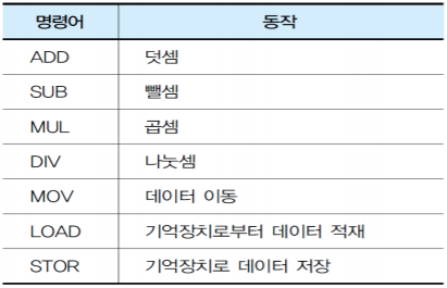 ex) LOAD X ;AC←M[X] (X번지의 데이터를 누산기에 저장해라)