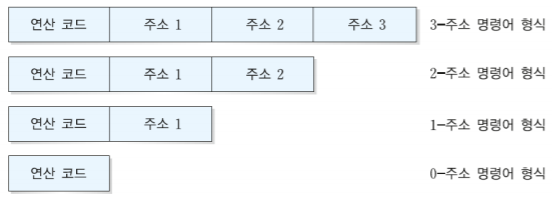 : 오퍼랜드 수에 따라 3, 2, 1, 0 주소 방식 존재